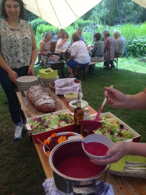 De bieten zijn enorm! Helaas zijn ze ook vaak voorgeproefd door de woelmuizen… Dit jaar is het ongelooflijk. Ik denk dat wel 70% is aangevreten. Ik hoop dat bij de restaurants ze nog iets kunnen met deze bieten. Anders gaan we een bietensoeplijn opzetten. De befaamde bietensoep van Marieke: Fruit 2 uien en 2 teentjes knoflook tot ze gecarameliseerd zijn. Voeg dan de gekookte bieten in blokjes toe en laat even meefruiten. Voeg dan water zeezout, peper en een paar druppels citroensap toe. Blender het geheel tot het helemaal glad is. Je kunt de soep zowel koud als warm eten.
