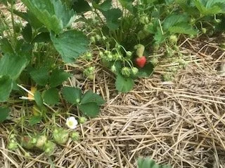 Verder nieuw in de tuin: de eerste aardbeien en peultjes zijn geoogst! Ik hoop volgende week genoeg te kunnen oogsten om aardbeien in het pakket te kunnen doen. Het hangt in ieder geval vol genoeg met groene aardbeien en de eerste aardbeien waren al heerlijk. Met de zon die er nu aankomt kunnen we weer heel wat kilo’s plukken. We hebben st Jansui geoogst, een klein uitje dat vroeg in het jaar vaak vers gegeten werd. Het is een heel oud bijna verloren gegane groente uit de provincie Utrecht, tot nu toe was ik vooral bezig met steeds meer knolletjes overhouden. Ik heb ze dit jaar flink kunnen vermeerderen zodat ik ze hopelijk ook een keer in het pakket kan doen. Nu groeien ze tussen de rucola om volgend jaar hopelijk een mooie oogst te geven.