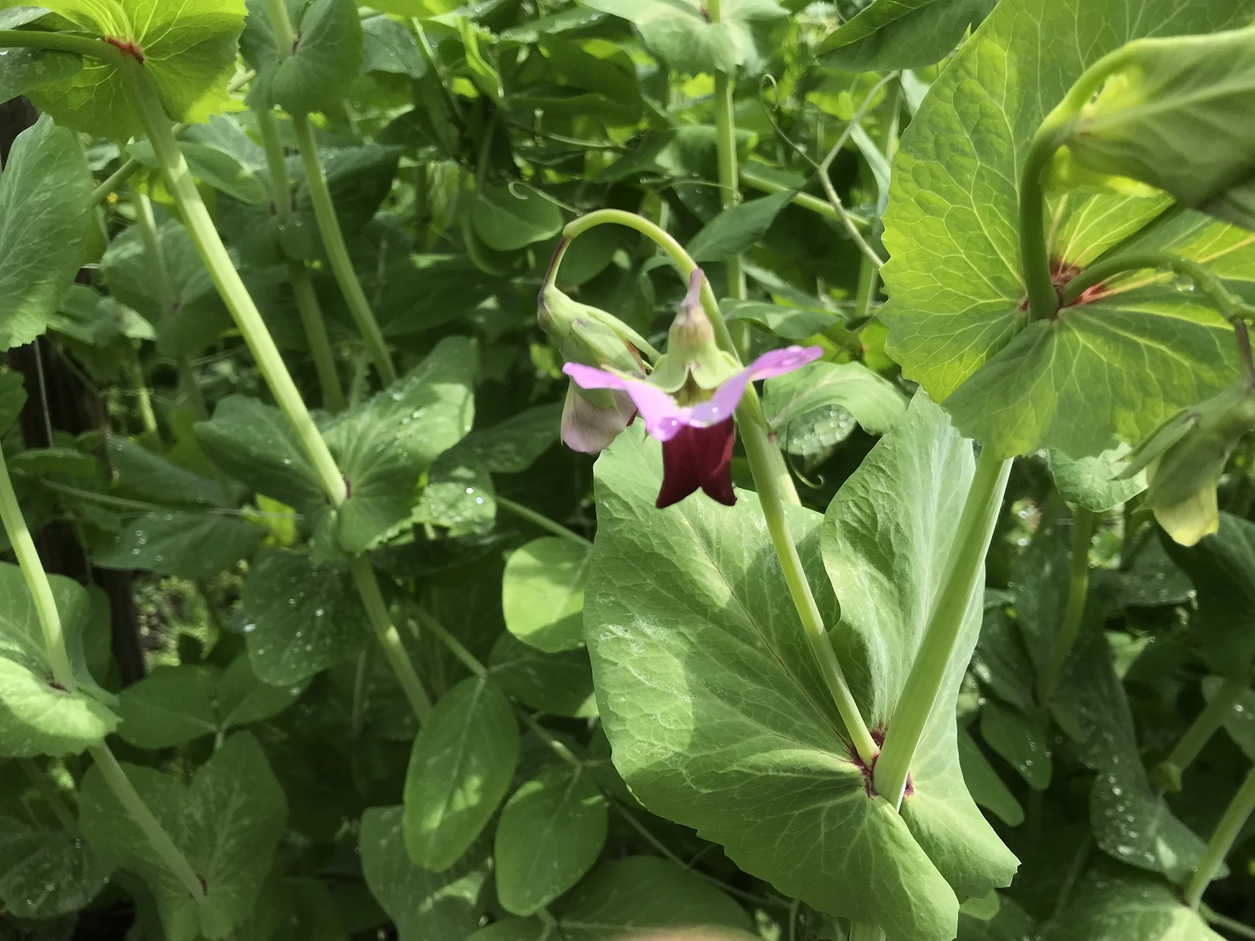 De grootste klus die we vandaag te doen hadden was de spinazie oogsten voor de hitte. Met zijn vieren trokken we het vak in waar we vorig jaar de melde hadden gezaaid. Dit jaar krijg je dan een beetje random een boel melde-spinazie van. We hebben vooral paarse en magenta melde geoogst. Die laatste heeft een prachtig roze hart. Ook vind je vogelmuur en gekroesde malva in de zak tussen. Beide plantjes bevatten veel vitamines en mineralen en zijn een natuurlijke voorjaars vitamineboost. Deze spinazie gebruik je net als gewone spinazie maar het is minder zuur. Je kunt wat druppels citroensap toevoegen aan het recept voor een frisse touch. Deze spinazie roerbak ik graag met wat bosknoflook. Heerlijk in een wrap met pulled chicken van een bio-soepkip van uitgelegde hennen en voor de kleur wat reepjes rauwe paprika. Of gewoon in een romige pasta-gerecht met wat zalm of blauwe kaas… mmm