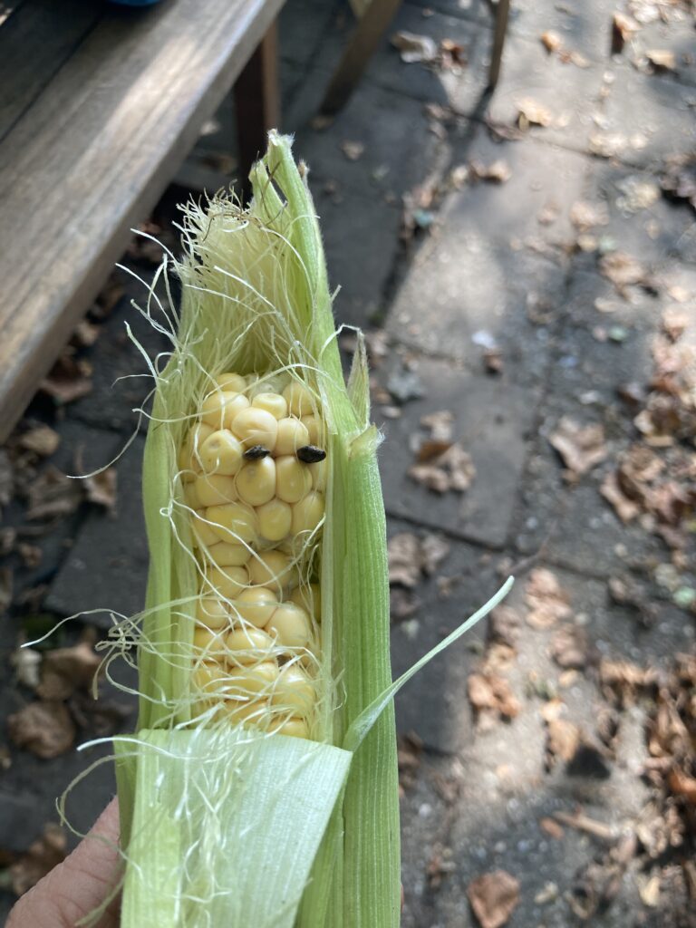 Nog een keer suikermais, ze worden al iets kleveriger dan de vorige keer. Suiker wordt langzaam omgezet naar zetmeel. Ik vind de plakkerige suikermais ook super lekker (en vullender). De Libelle heeft leuke recepten met verse suikermais verzameld. Ik heb zelf alleen nog de salade gemaakt maar ga de maiskoekjes en soep zeker proberen.